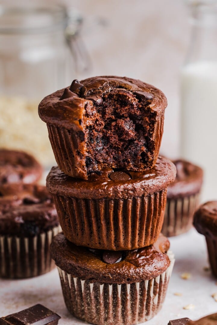 - No flour, just oats – instead of wheat flour, this decadent chocolate muffin uses oats as the base for extra fiber and nutrition. Explore more recipes with oats.